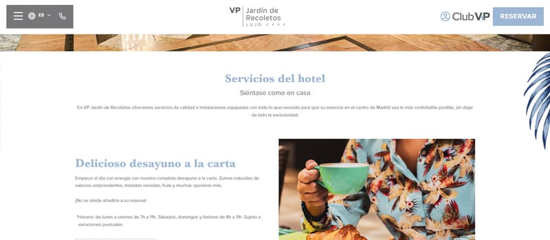 Página de los servicios del hotel VP Jardín de Recoletos: